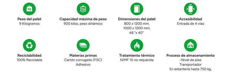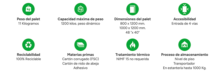 La opción de máxima capacidad, comparable a palets de madera robustos, pero con todos los beneficios de la ligereza y sostenibilidad del cartón.